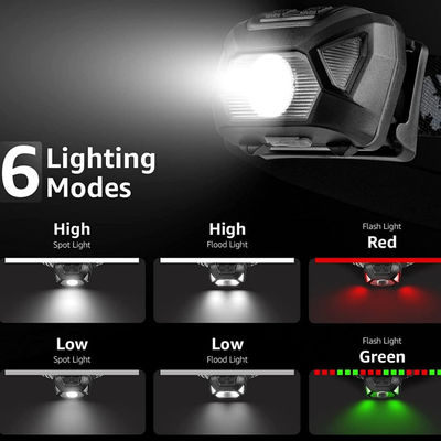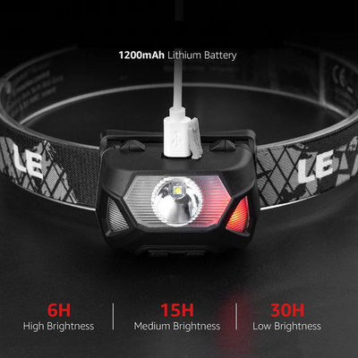 ไฟหน้าแบบชาร์จไฟได้ 2000 Lumens แสงสีแดงสีขาว เซ็นเซอร์ตรวจจับการเคลื่อนไหว กันน้ำ